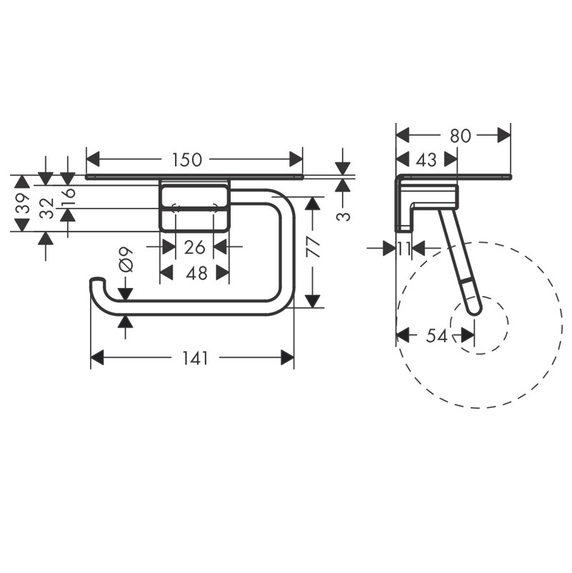 Caractéristiques de AddStoris Porte-papier WC mural avec tablette, Noir mat, Hansgrohe AddStoris (41772670) :