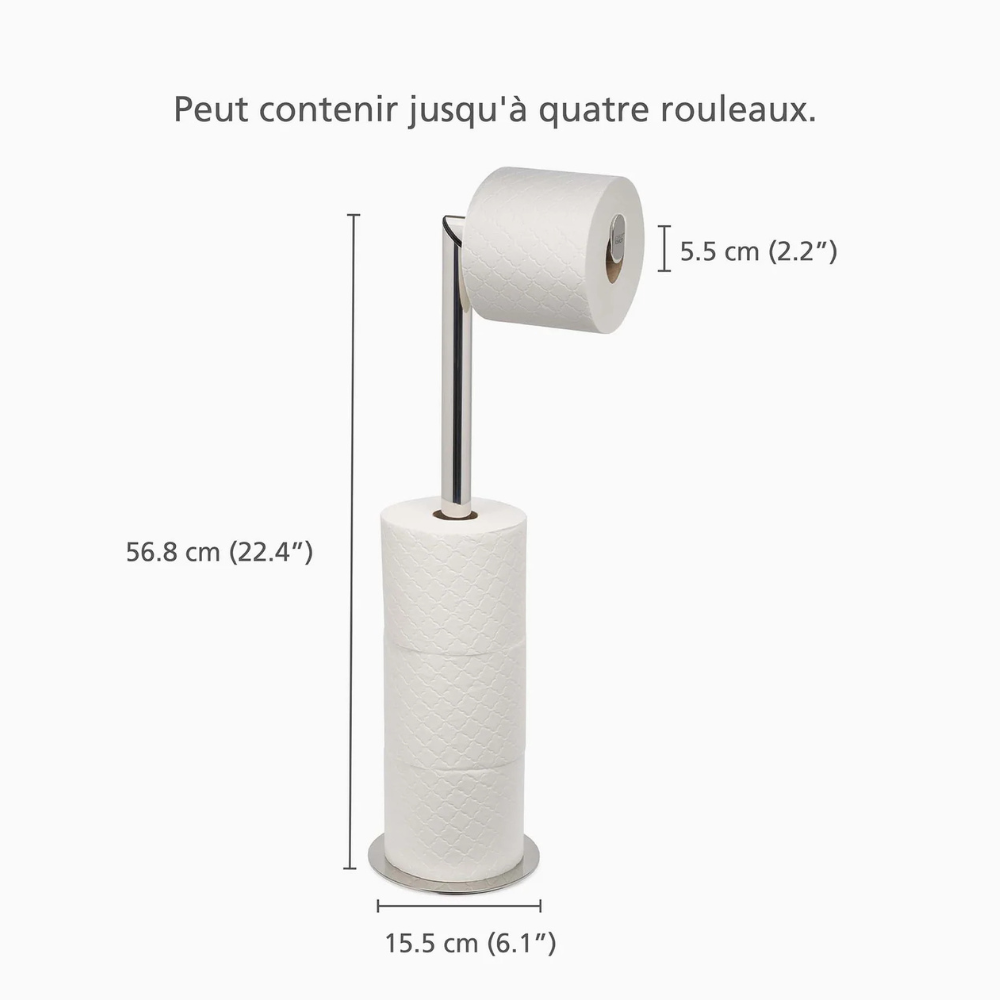 - Peut contenir jusqu'à quatre rouleaux de papier toilette en même temps.