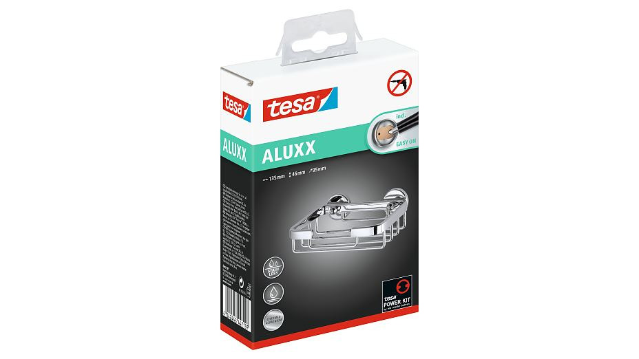 Caractéristiques du Porte-savon 4,6x13,5x9,5cm, Aluminium, Chrome, pose facile sans perçage, Tesa Aluxx (40208-00000-00) :