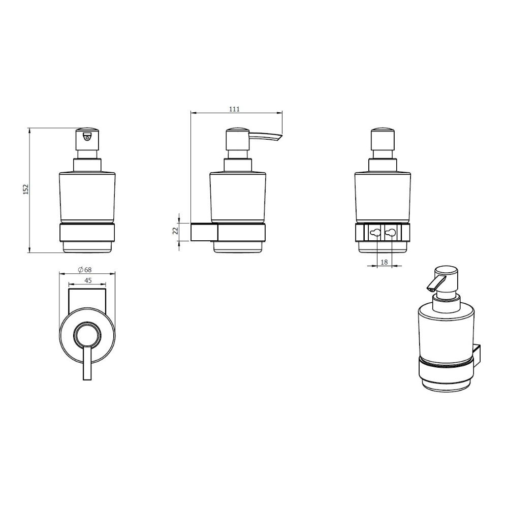 Caractéristiques du distributeur de savon en métal et verre, noir (SATDPROJ99MC)