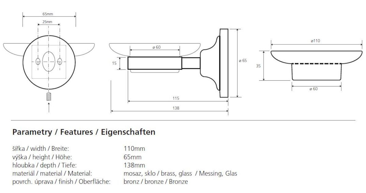Caractéristiques du porte-savon en Laiton, Bronze Bemeta Ricordi (OPTIMARIC39BR) :