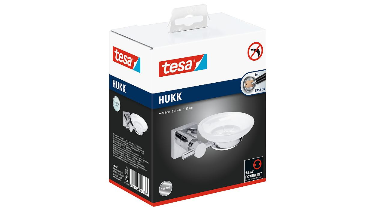 Caractéristiques du porte-savon, métal chromé, pose facile sans perçage, Tesa Hukk (40256-00000-00):
