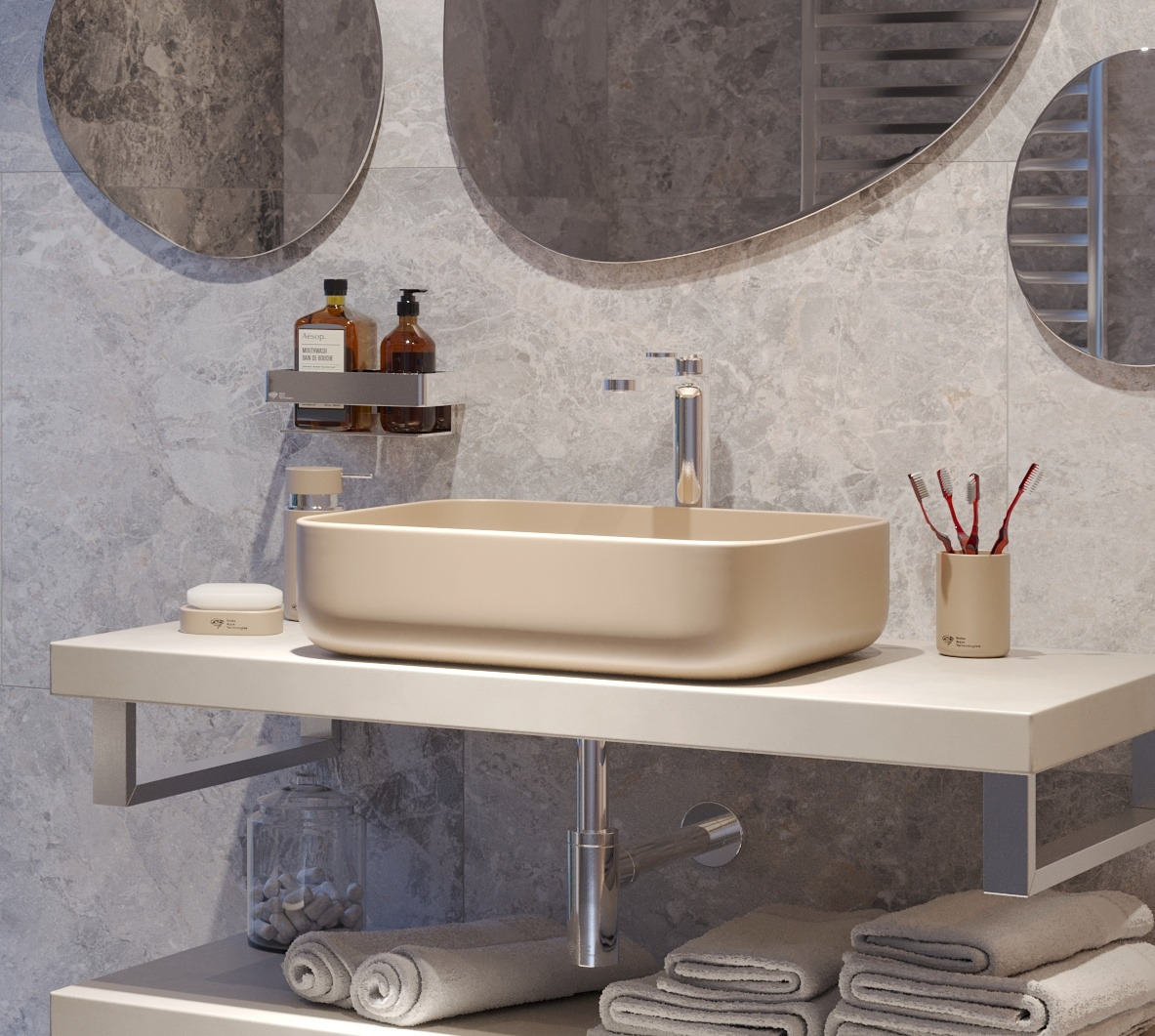 Ce porte-savon en finition beige mat, apportera à votre salle de bain de la modernité grâce à son design minimaliste et coloré.