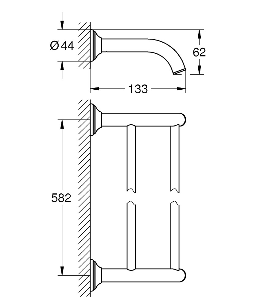 Caractéristiques de la Double barre porte-serviettes en métal avec fixations cachées, Nickel brossé Grohe Essentials Authentic (40654EN1) :