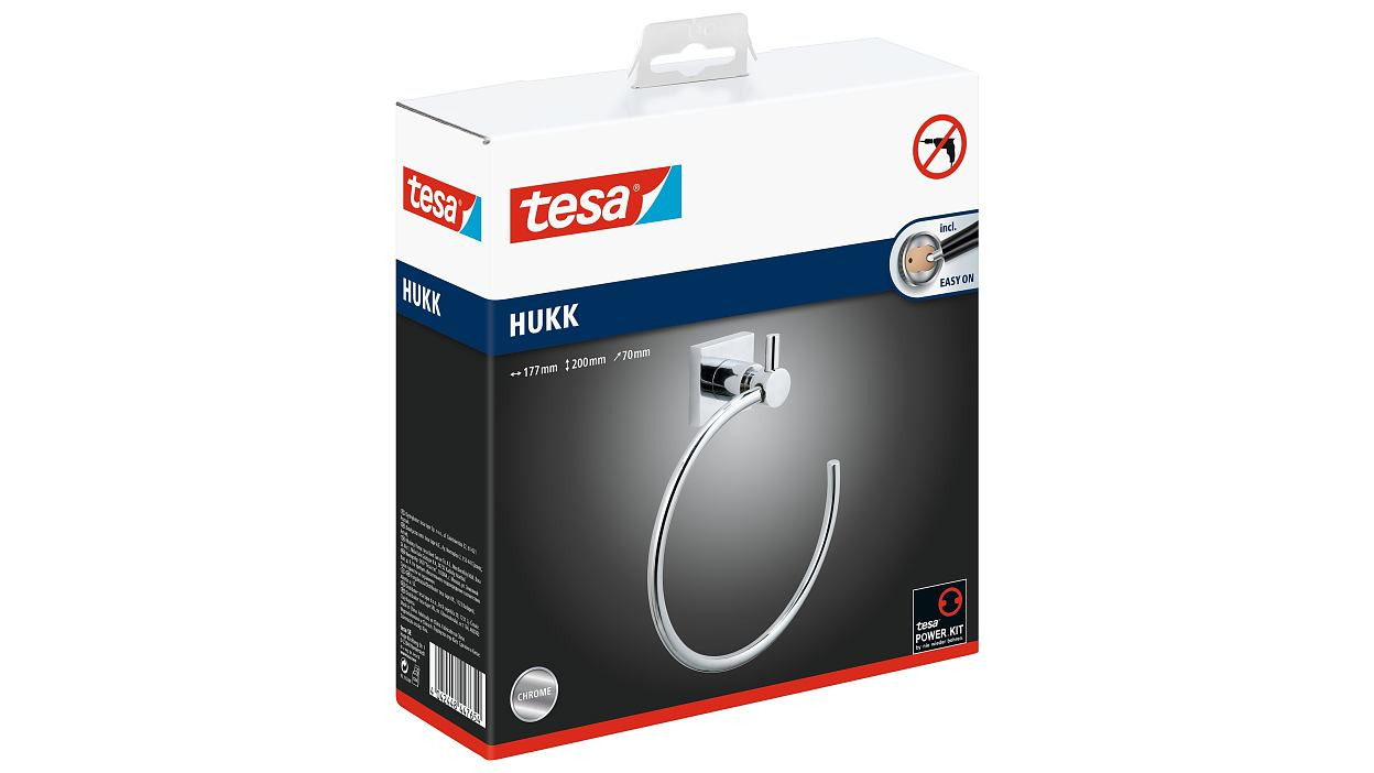 Tesa Hukk Anneau porte-serviette, métal chromé, pose facile sans perçage (40254-00000-00)