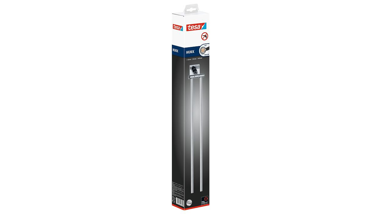 Caractéristiques du porte-serviettes 2 barres, métal chromé, pose facile sans perçage, Tesa Hukk (40249-00000-00) :