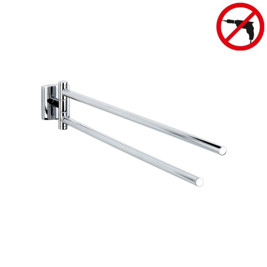 Tesa Klaam Porte-serviette mural 2 barres mobiles, Métal, Chrome, pose facile sans perçage (40261-00000-00)