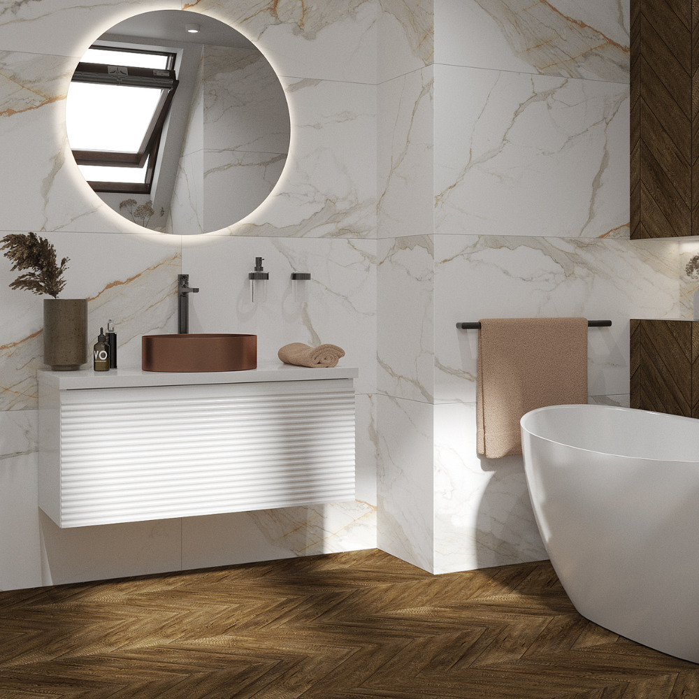 Retrouvez là directement avec la salle de bain interactive LIVEA avec son effet marbre.