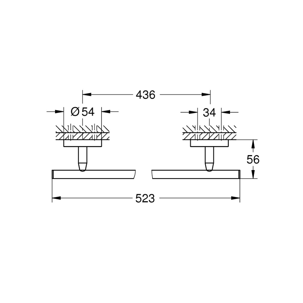 - Peut être vissé au mur (vis et cheville inclus) ou collé (colle GROHE QuickGlue référence : A2 41 128 000 vendue séparément)