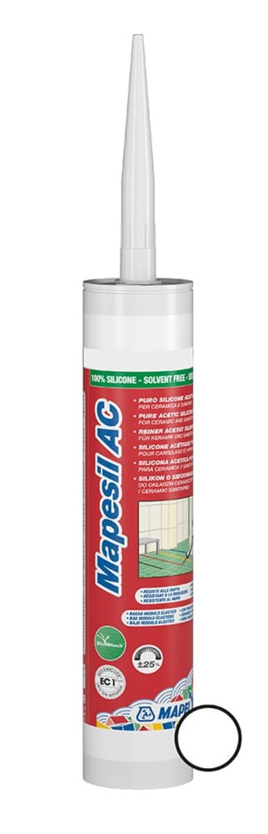 Caractéristiques du Mastic 100% silicone, sans solvant, résistant aux moisissures, Blanc, Mapei Mapesil AC (MAPS100) :