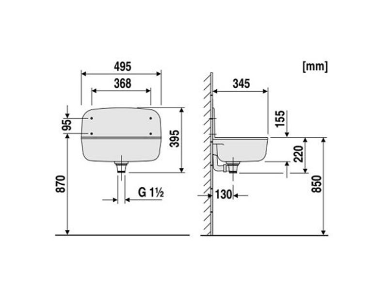 - Hauteur : 395 mm (dont partie supérieure 175 mm).