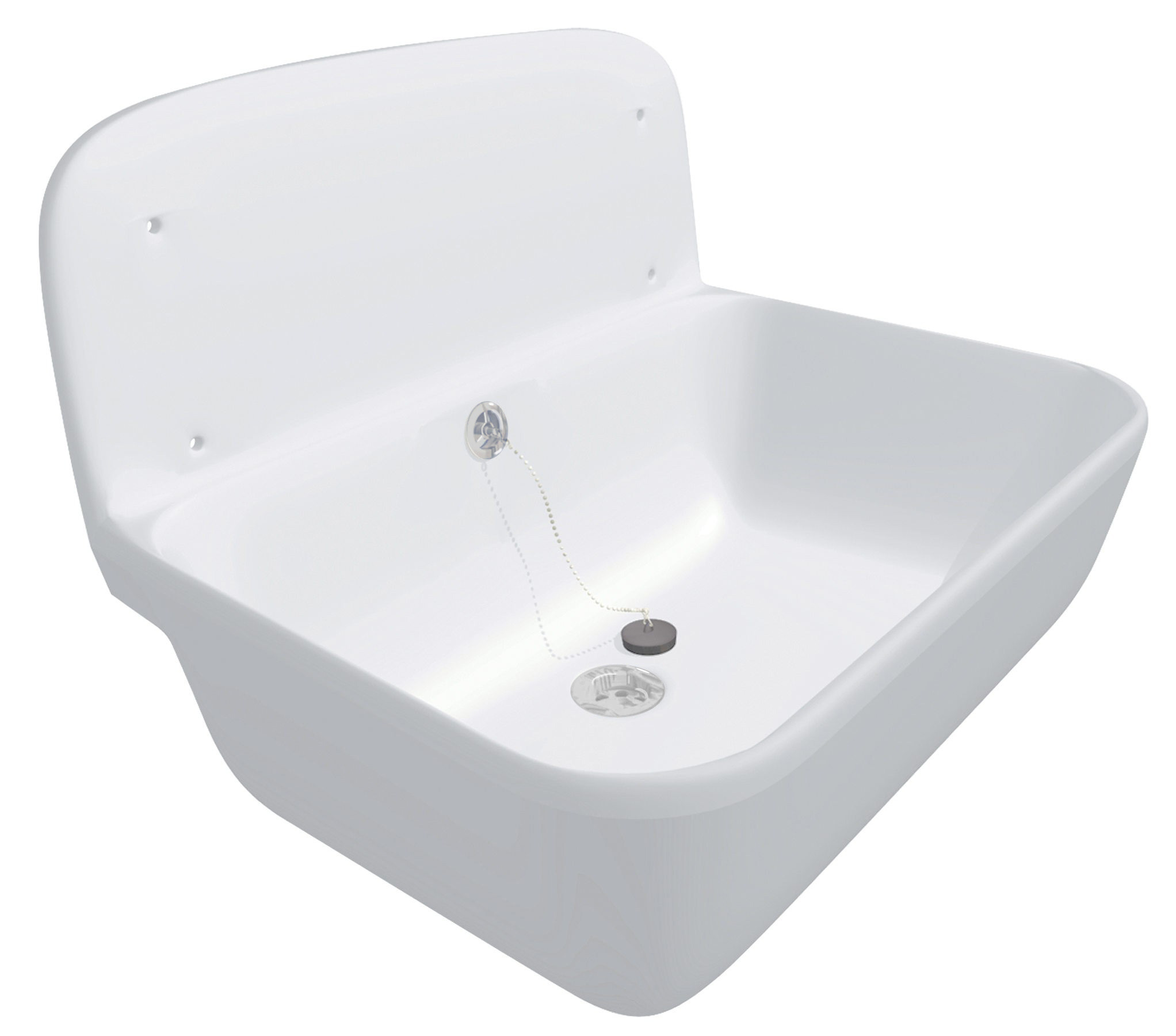- Complet avec trop-plein, bonde DN 40 1 1/2", tamis, bouchon avec chaîne et kit de fixation