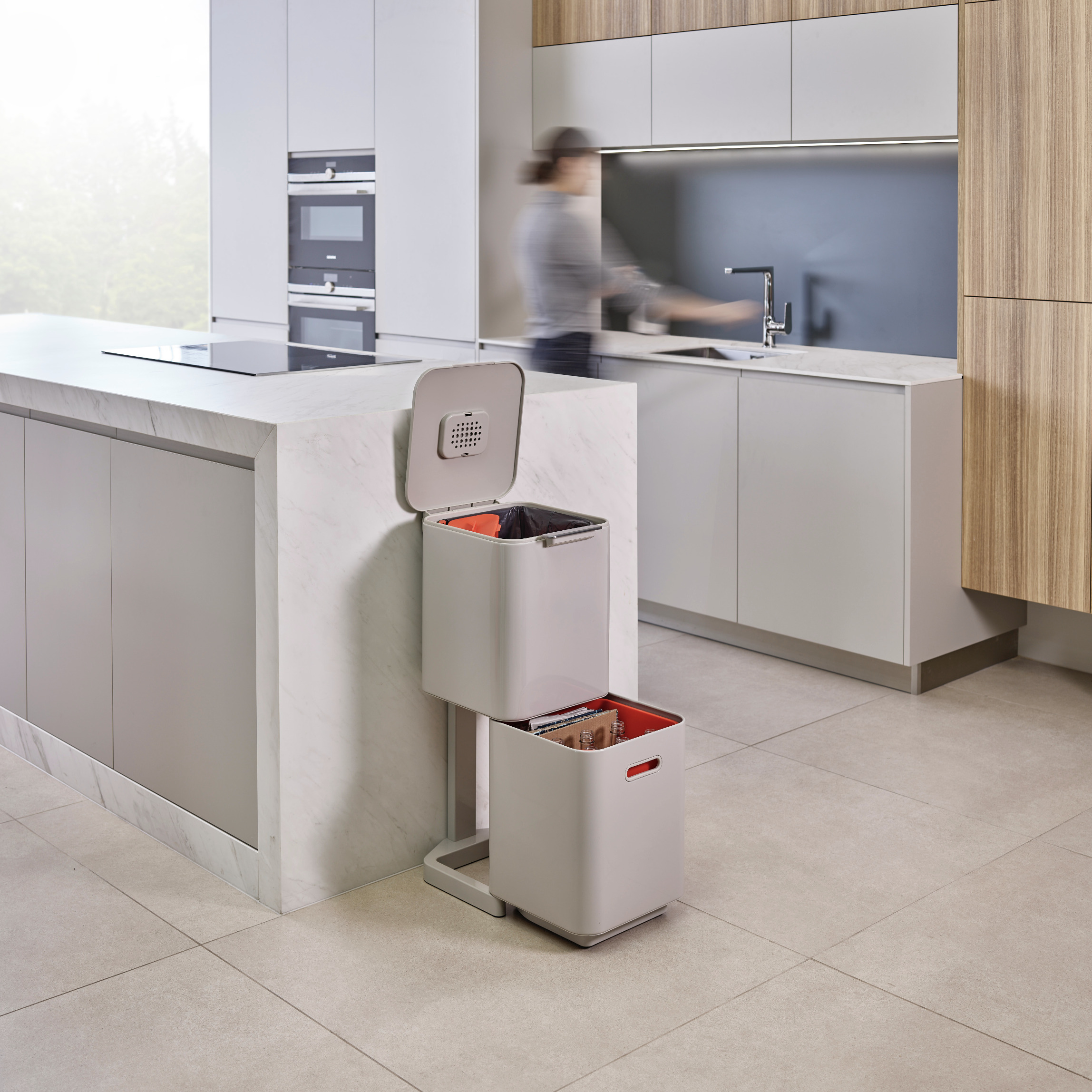 Totem Compacte poubelle avec séparation des déchets et recyclage, 40 litres, filtre à charbon actif, beige (30064)