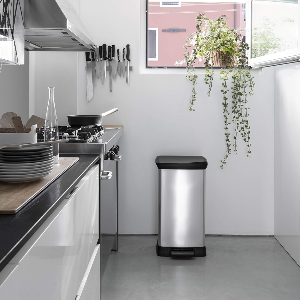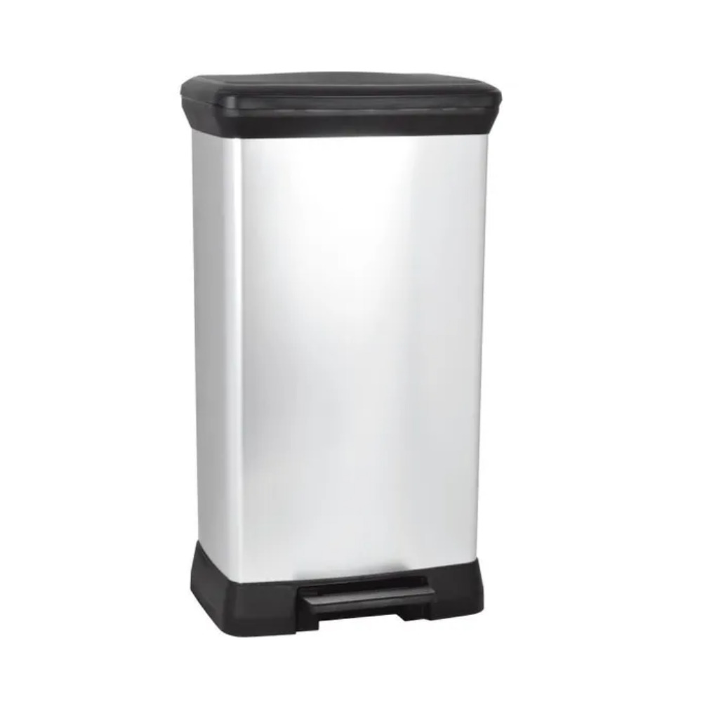 Curver Deco bin 50L Poubelle à pédale, 39 x 29 x 73 cm, Argent (187177)