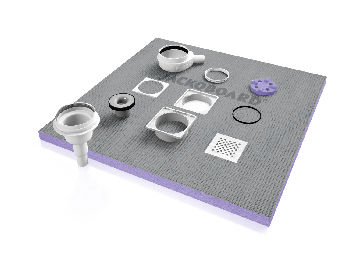 Les receveurs de douche JACKOBOARD® Aqua permettent l’aménagement personnalisé de belles salles de bains. Ils sont disponibles dans tous les formats standards et un grand nombre de dimensions et de formes sur mesure. Ils disposent d’un noyau en mousse rigide de polystyrène extrudé (XPS) hydrofuge, d’une pente préformée et d’un revêtement spécial sur les deux faces qui permet de les carreler directement, sans aucune préparation supplémentaire.