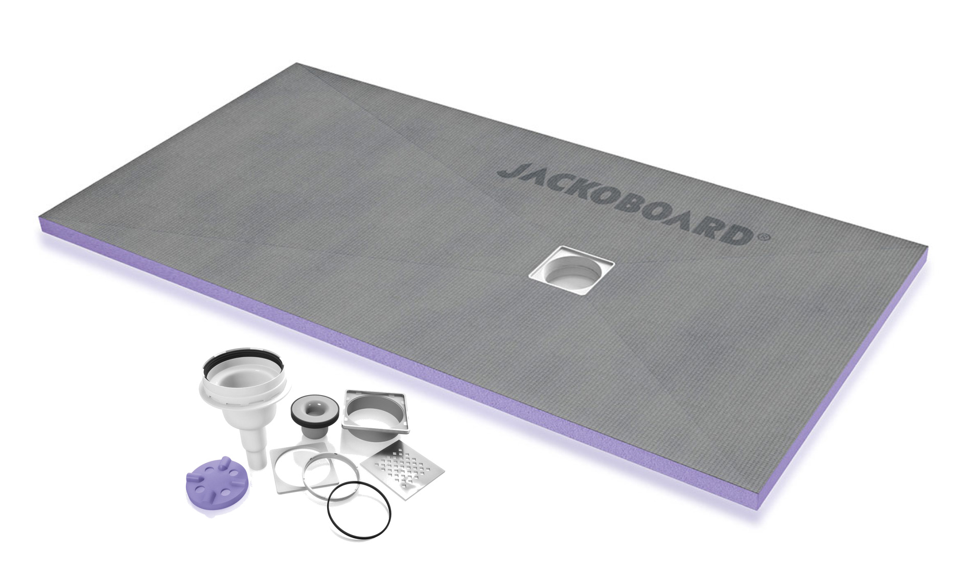 Les receveurs de douche JACKOBOARD® Aqua permettent l’aménagement personnalisé de belles salles de bains. Ils sont disponibles dans tous les formats standards et un grand nombre de dimensions et de formes sur mesure. Ils disposent d’un noyau en mousse rigide de polystyrène extrudé (XPS) hydrofuge, d’une pente préformée et d’un revêtement spécial sur les deux faces qui permet de les carreler directement, sans aucune préparation supplémentaire.