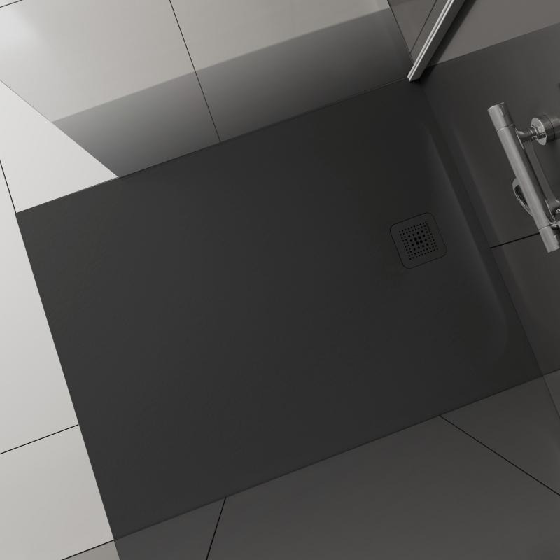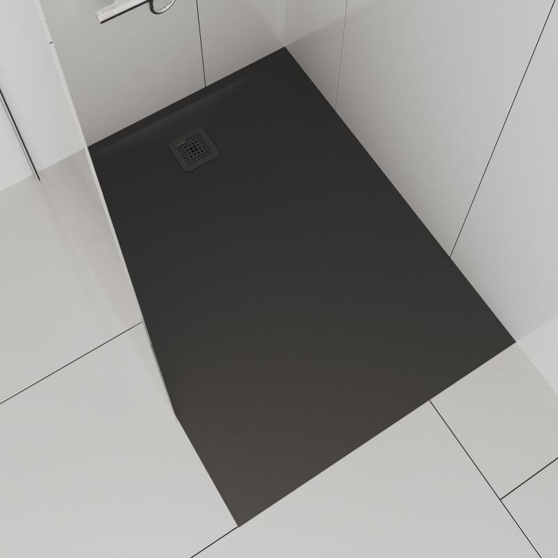 Pro Receveur de douche en gel coat Marbond, évacuation sur le côté court 100x90, Gris mat (H2109570780001)