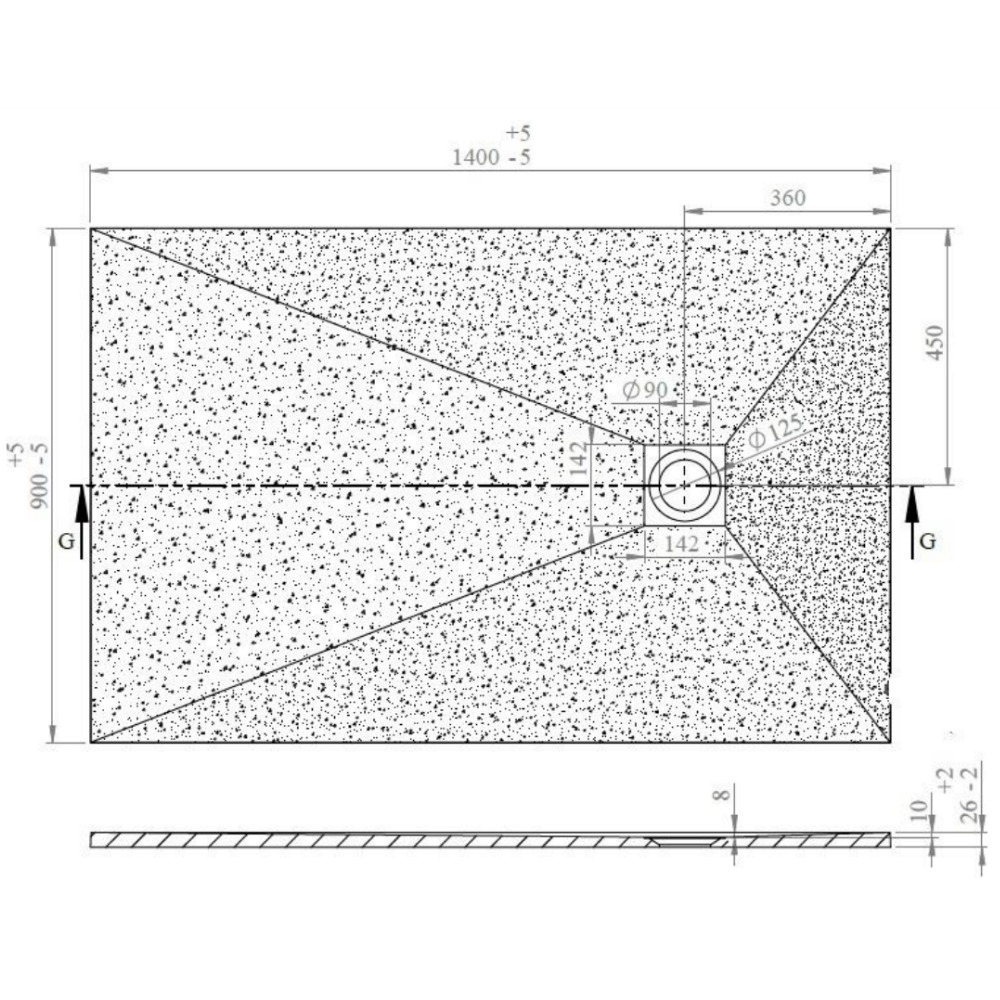 Caractéristiques du receveur de douche rectangulaire 140x90cm avec siphon, en marbre coulé, Gris, Alek Swiss Aqua Technologies (SATALEK14090S-S) :