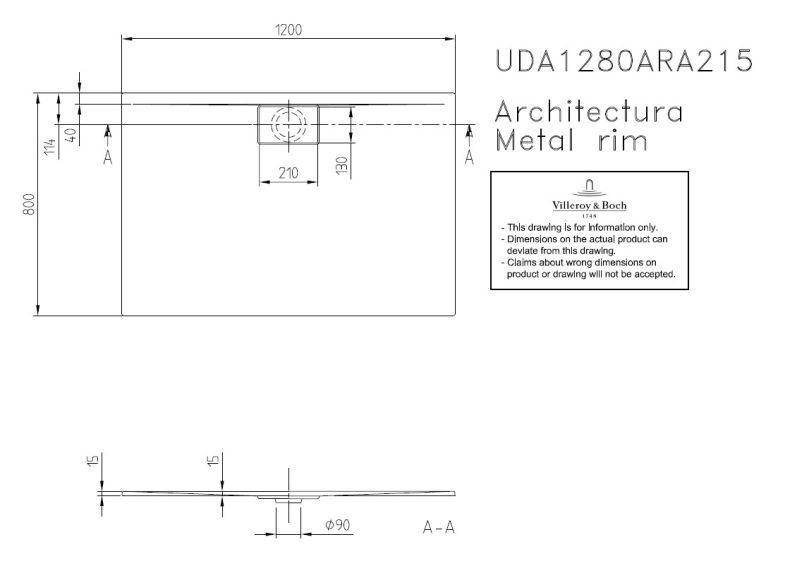 Receveur Architectura Metalrim, 1200 x 800 x 15 mm, gris (UDA1280ARA215V-3S)