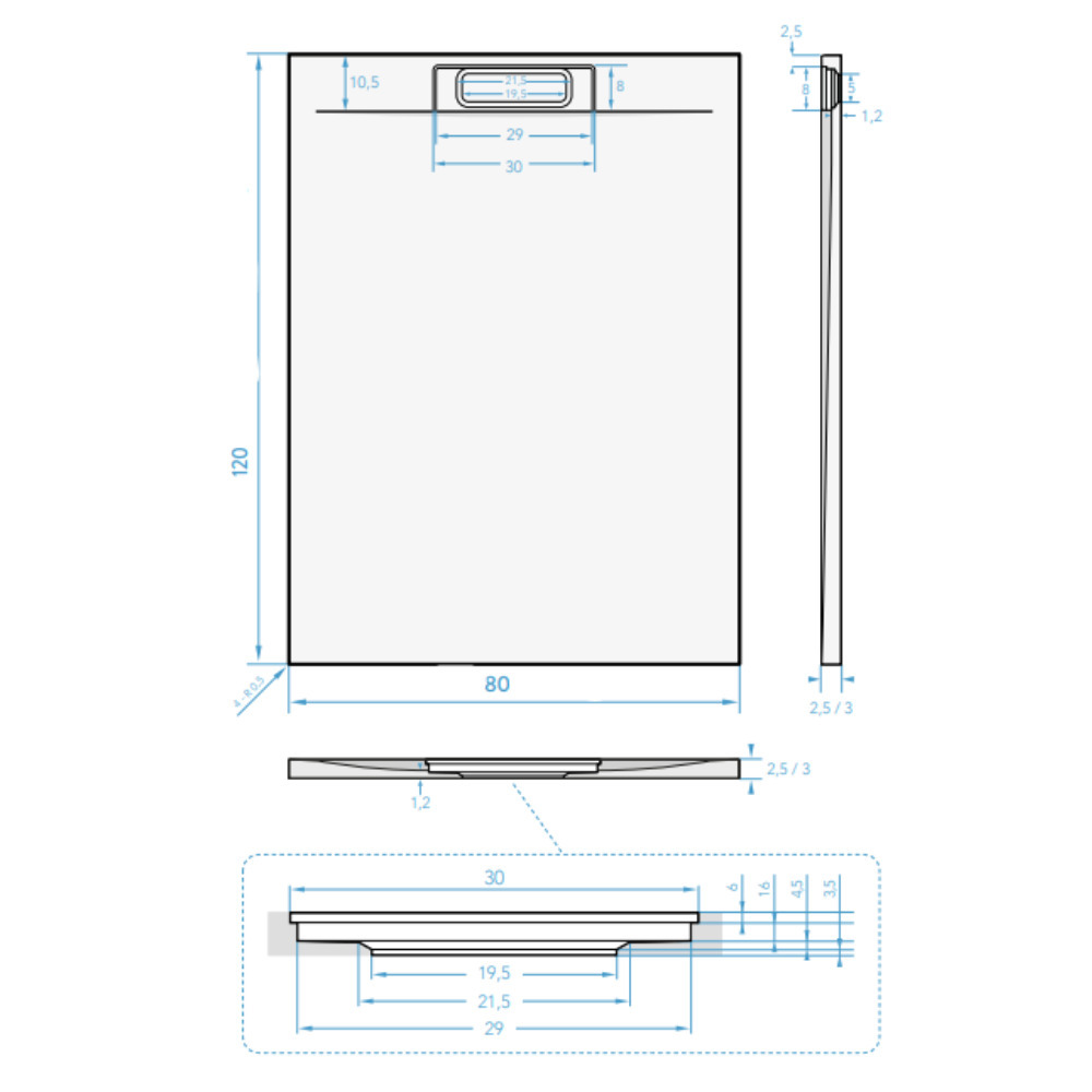 Caractéristiques du Receveur de douche rectangulaire 120 x 80 cm avec siphon, Blanc (SATFU12080BL) :