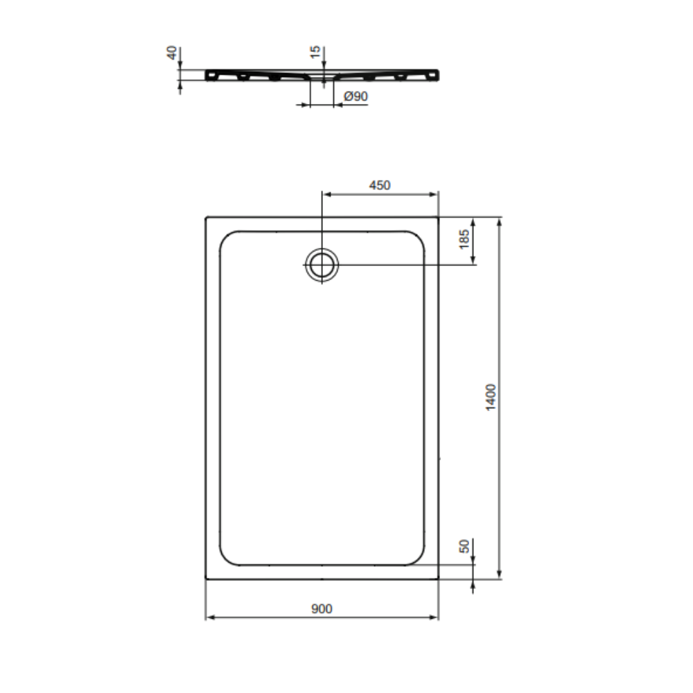 Porcher Okyris+ 140x90cm receveur de douche ultra plat 4 cm en grès, Blanc (P021601)