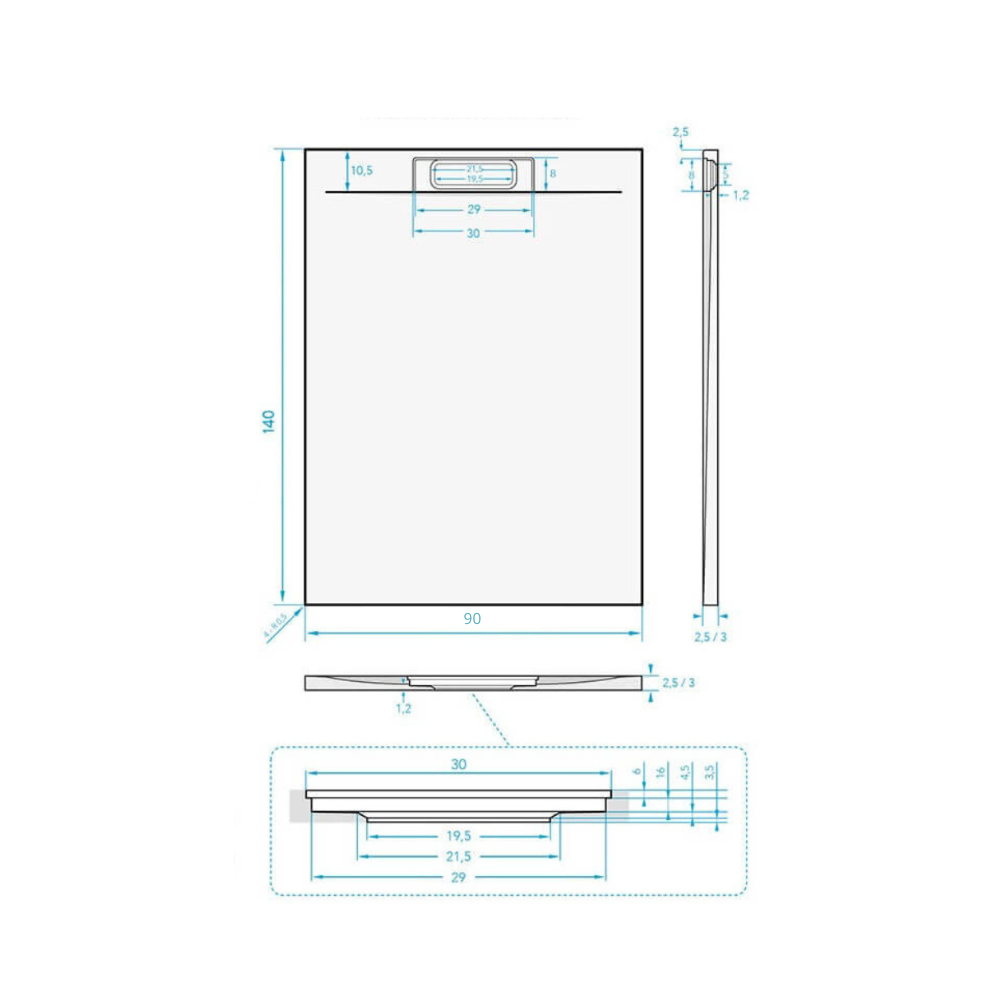 Caractéristiques du Swiss Aqua technologies Fusion Receveur de douche 140x90cm en marbre coulé avec siphon, Gris (SATFU14090GRP-S) :
