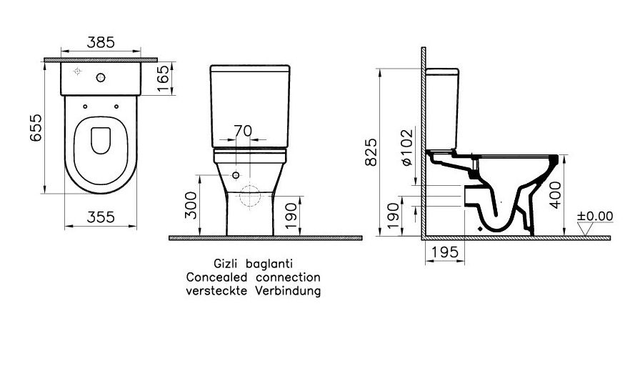 - Equipé avec mécanisme à bouton poussoir (fonction 3/6 l)