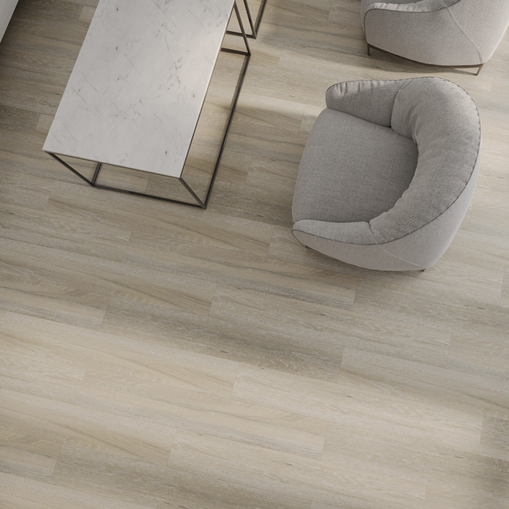 La nouvelle génération de revêtements de sol en vinyle BETTER Click (Rigid Core) allie un design attrayant aux dernières technologies. Un patin intégré d'une épaisseur de 1 mm permet d'égaliser les imperfections du support et assure une isolation phonique jusqu'à 20 dB. Le sol est 100 % étanche, c'est pourquoi il constitue un choix idéal pour la salle de bain et la cuisine. Le sol peut être posé directement sur le sol d'origine, ce qui permet d'économiser du temps et de l'argent.