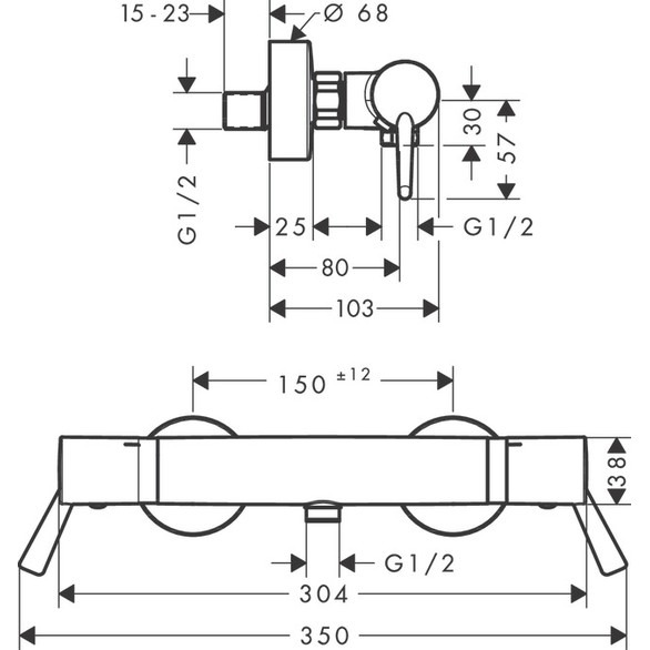 - Entraxe: 150 mm ± 12 mm