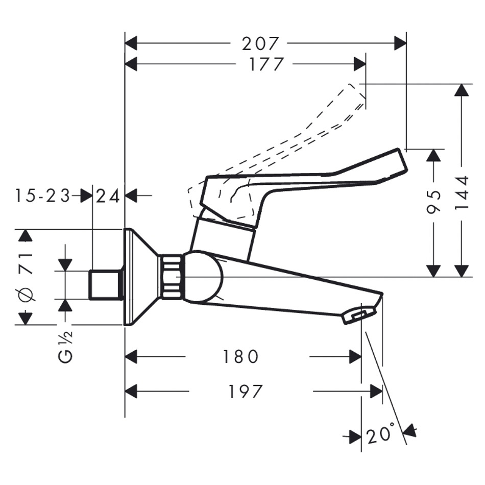 Caractéristiques du Mitigeur PMR Lavabo mural avec poignée extra longue, Chrome, Hansgrohe Focus Care (31913000) :