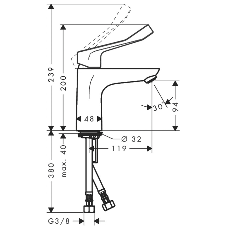 Caractéristiques du Mitigeur de lavabo CoolStart avec poignée extra longue, Chrome, Hansgrohe Focus Care (31917000) :