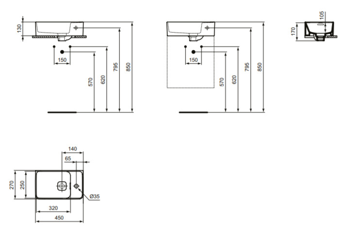Caractéristiques du Lave-mains blanc 450x270 mm Ideal Standard Strada II :