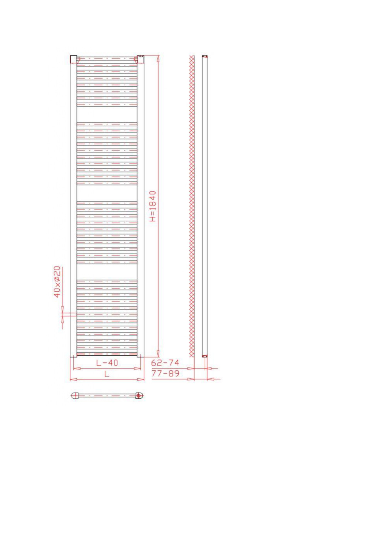 Dimensions : 60x185 cm Profondeur de construction standard B : 83 – 93 millimètres Fils de connexion : G 1/2" interne Température de fonctionnement maximale : 110°C Surpression maximale de fonctionnement : 1,0 MPa Test de surpression : 1,5 MPa Performance thermique selon EN 442