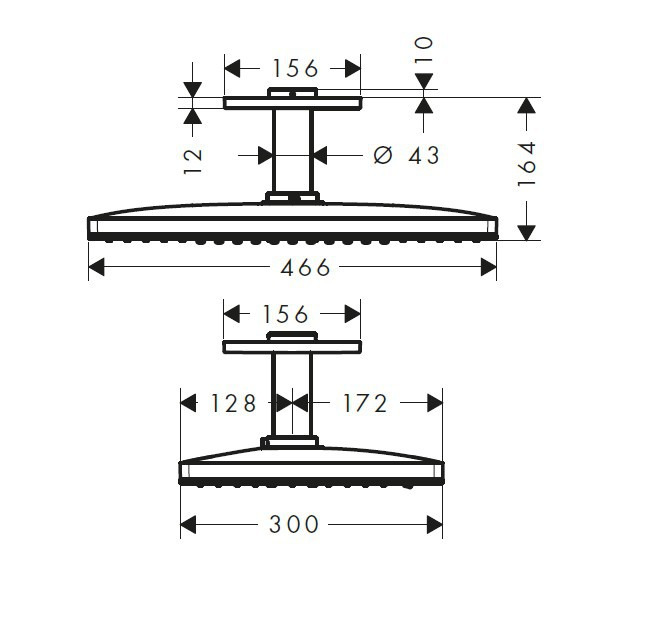 Hansgrohe Rainmaker Select Douche de tête Rainmaker Select 460 3jet avec raccord plafond 100 mm, noir/chromé (24006600)