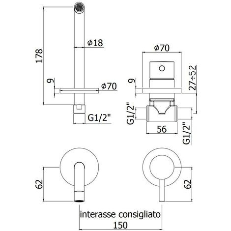 Caractéristiques du Mitigeur de lavabo encastré bec 175 mm + Corps d'encastrement, installation 2 trous, Noir mat, Light Paffoni (LIG006NO70) :