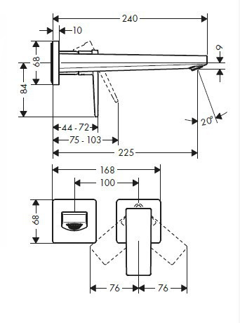 - Hansgrohe Metropol Mitigeur de lavabo encastré mural, bec 225mm, poignée manette, bonde à écoulement libre, chromé (32526000)