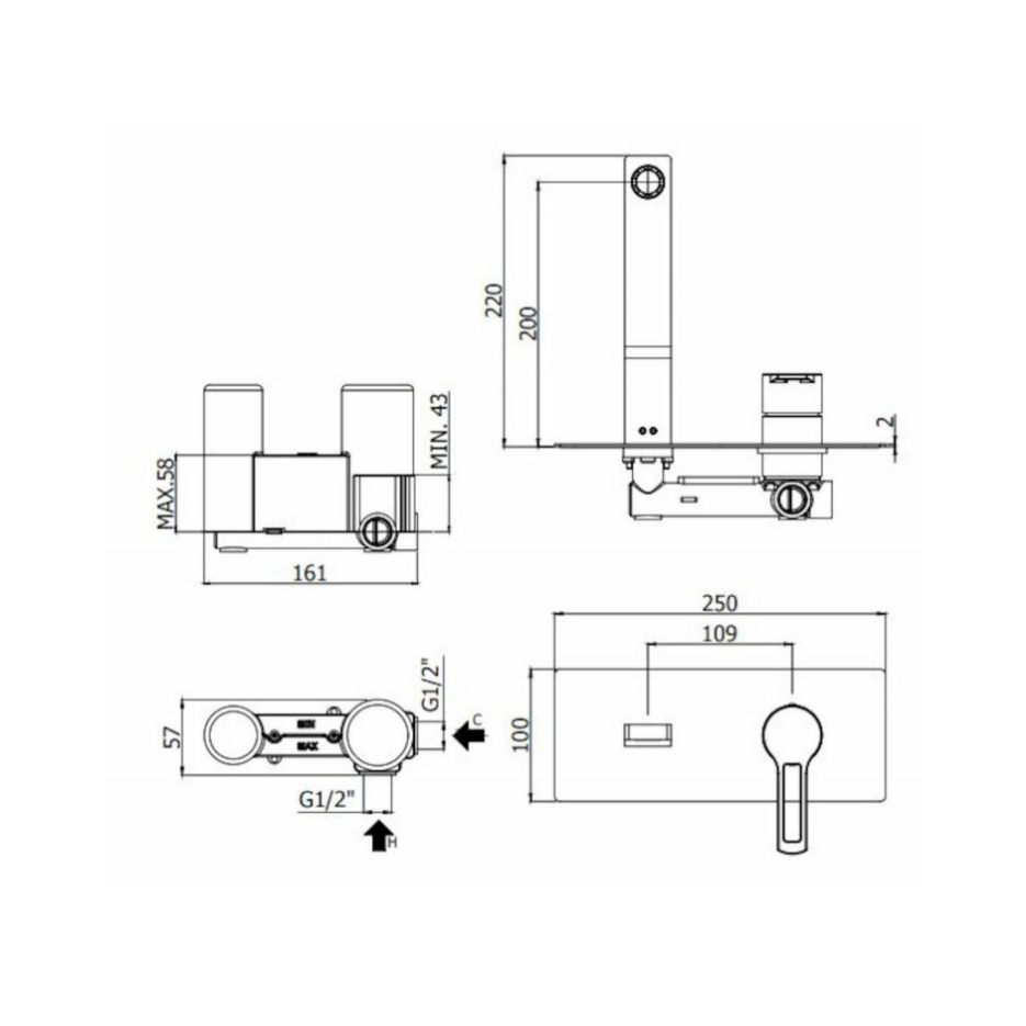 Ringo West Mitigeur de lavabo encastré avec corps d’encastrement et mousseur M24x1, Chrome (RIN105)