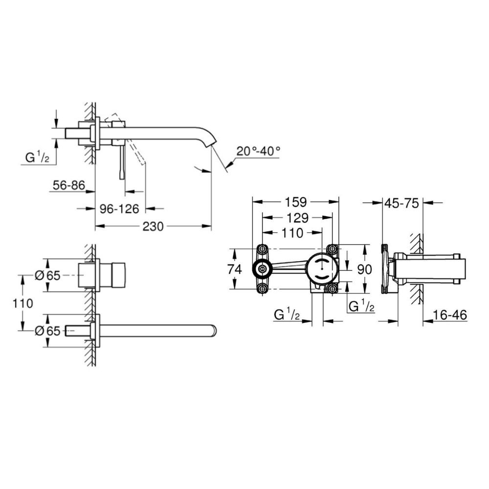 Grohe Set Mitigeur lavabo monocommande montage mural, 2 trous taille L + Corps encastré, Gris (29193AL1-SET)