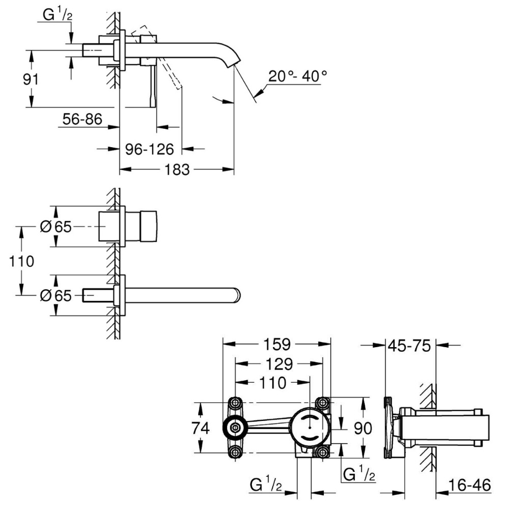 Caractéristiques du Set Mitigeur monocommande 2 trous, mural, Taille M Grohe Essence + Corps d'encastrement, supersteel (29192DC1-SET) :
