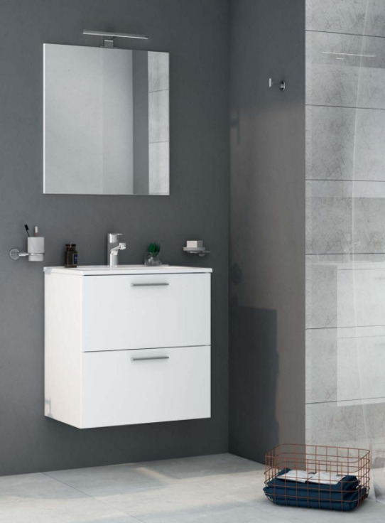 Caractéristiques du Meuble 59x61x39,5 cm pour salle de bain avec miroir, lavabo et éclairage LED, Blanc brillant, Vitra Mia (MIASET60B) :