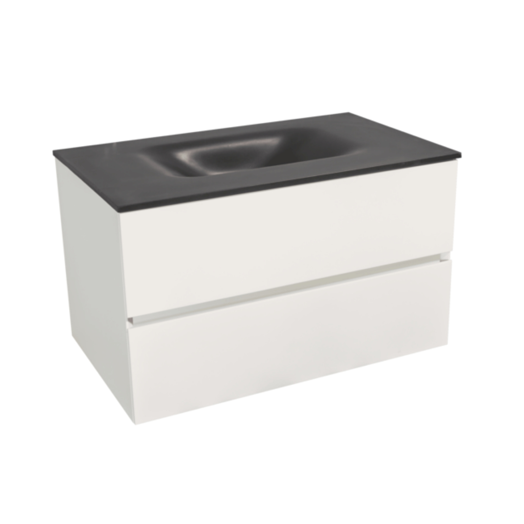 Naturel Verona Set Meuble 86cm suspendu blanc mat avec 2 tiroirs fermeture lente + Vasque marbre coulé noir mat (Verona86NB)