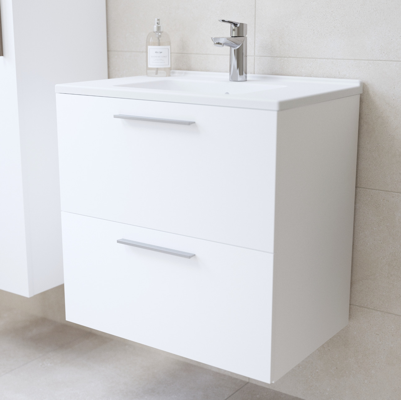 - Mia Meuble 59x61x39,5 cm pour salle de bain avec miroir, lavabo et éclairage LED, Blanc brillant (MIASET60B)