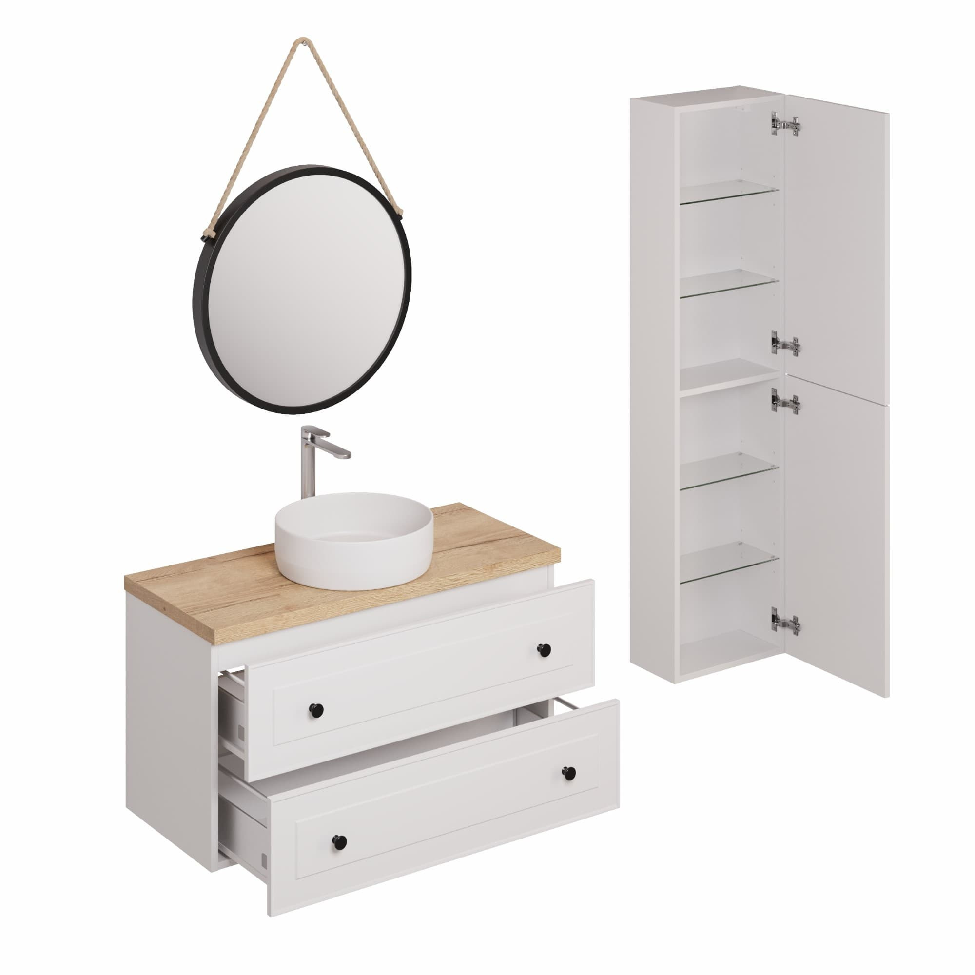 L' ensemble de salle de bain Naturel Forli avec lavabo comprenant mitigeur et siphon est un ensemble de salle de bain à prix réduit qui offre un design moderne et simple. Les armoires sont fabriquées dans un matériau blanc de haute qualité, ce qui confère à l'ensemble un aspect élégant. L'ensemble offre suffisamment d'espace de rangement pour les affaires de salle de bain. Le mitigeur de lavabo à surface chromée s'accorde parfaitement au design de l'ensemble. D’une manière générale, il s’agit d’un ensemble moderne et élégant qui complétera parfaitement votre salle de bain.