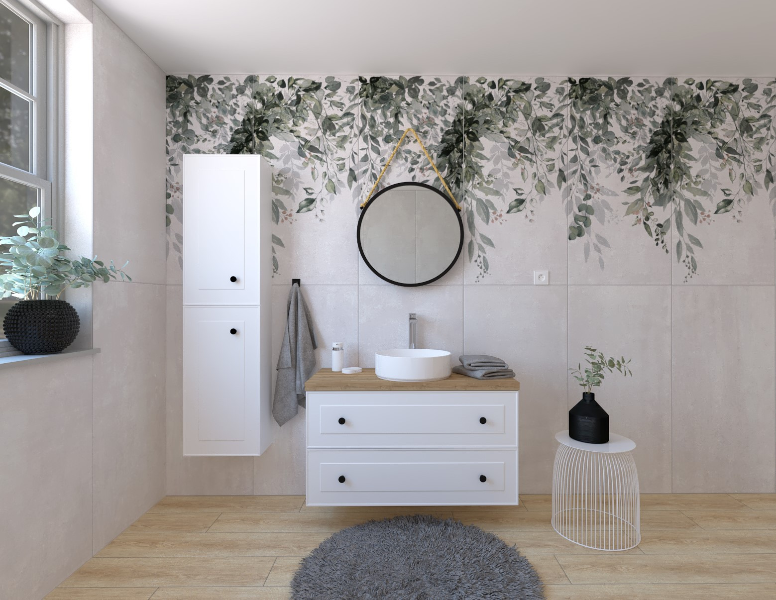 - Miroir Naturel 40 cm noir. Le miroir a un cadre noir élégant et peut être placé au-dessus du lavabo.