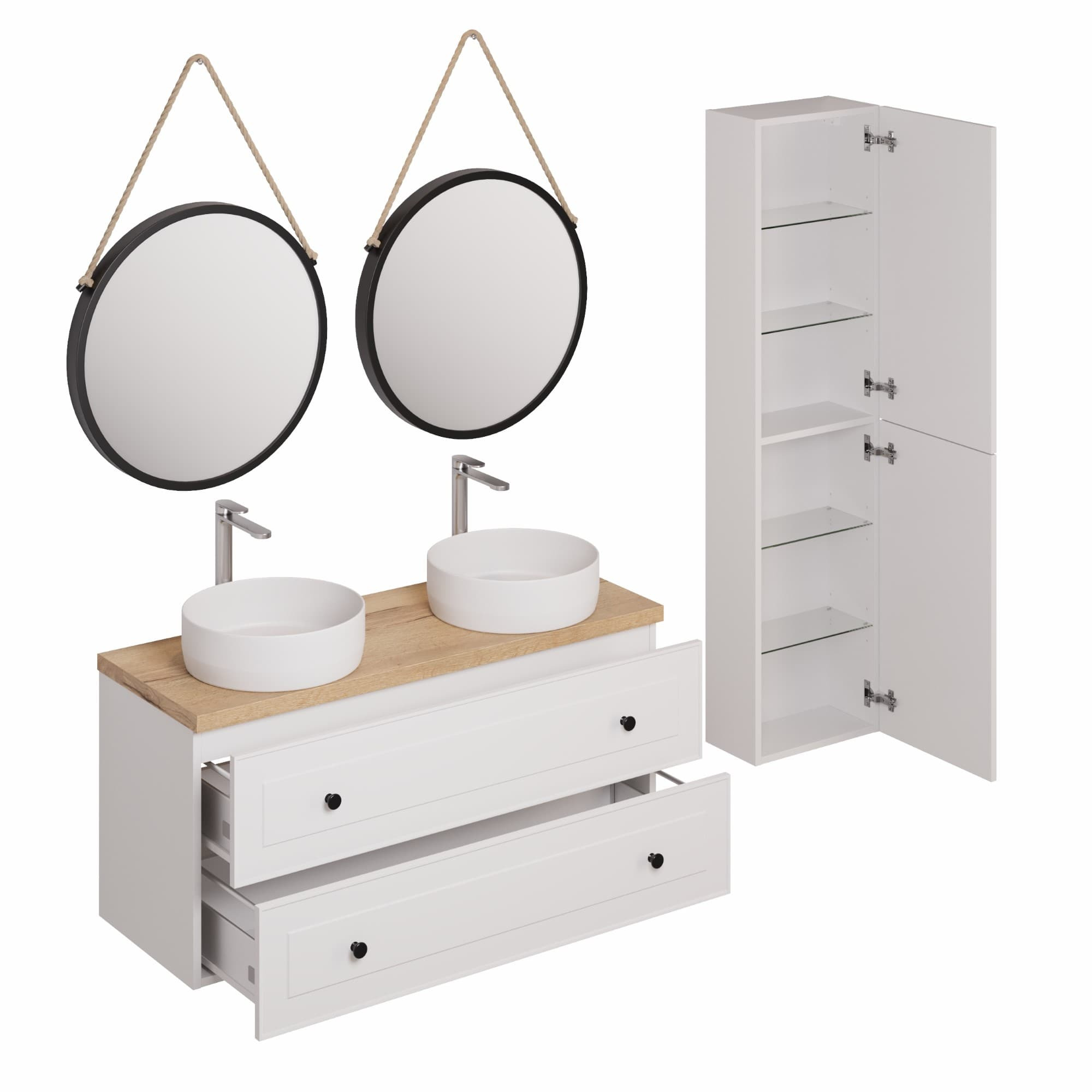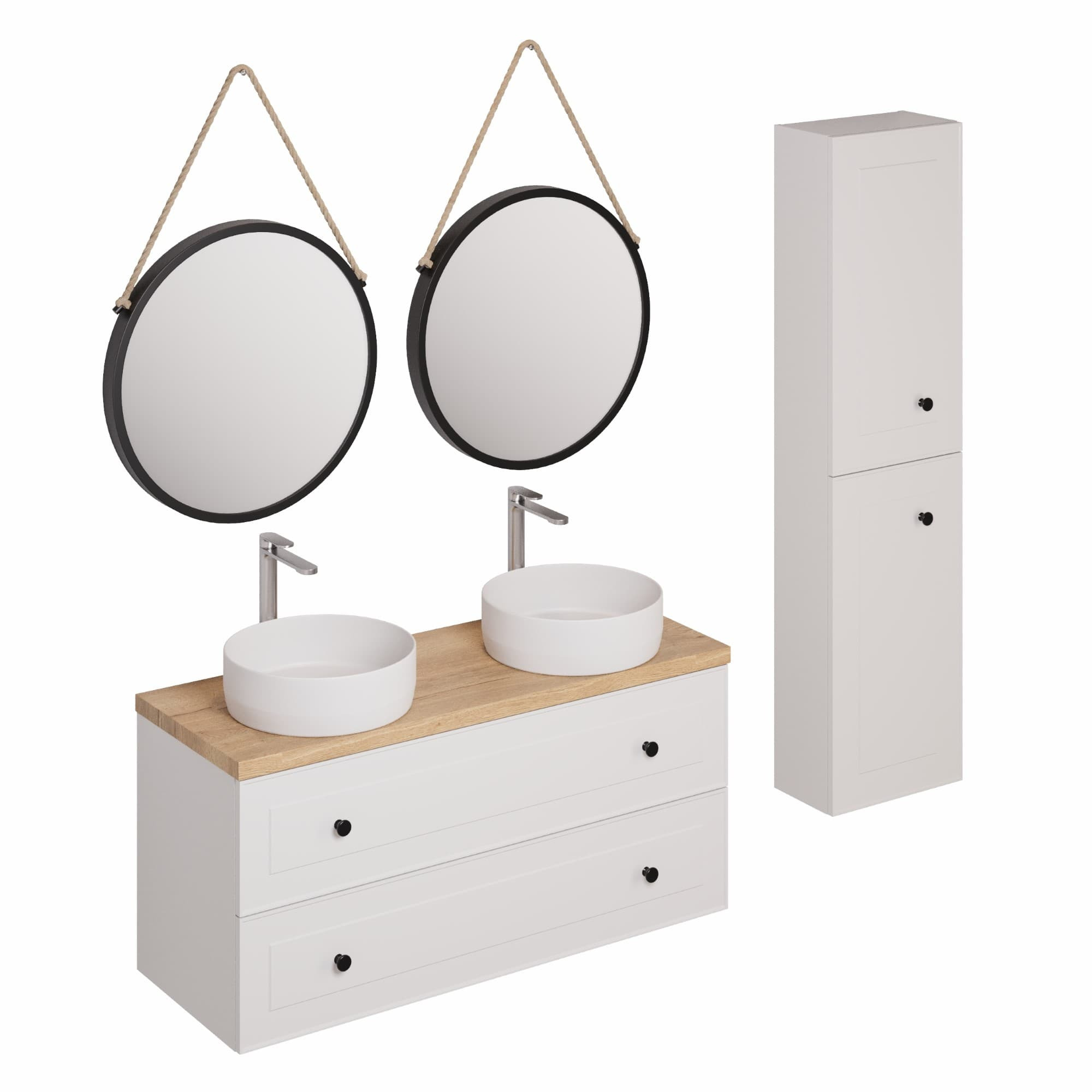L' ensemble de salle de bain Naturel Forli avec lavabos, robinets et siphons. C'est un ensemble de salle de bain à prix réduit qui offre un design moderne et simple. Les armoires sont fabriquées dans un matériau blanc de haute qualité, ce qui confère à l'ensemble un aspect élégant. L'ensemble offre suffisamment d'espace de rangement pour les affaires de salle de bain. Les robinets à surface chromée s'accorde parfaitement au design de l'ensemble. D’une manière générale, il s’agit d’un ensemble moderne et élégant qui complétera parfaitement votre salle de bain.
