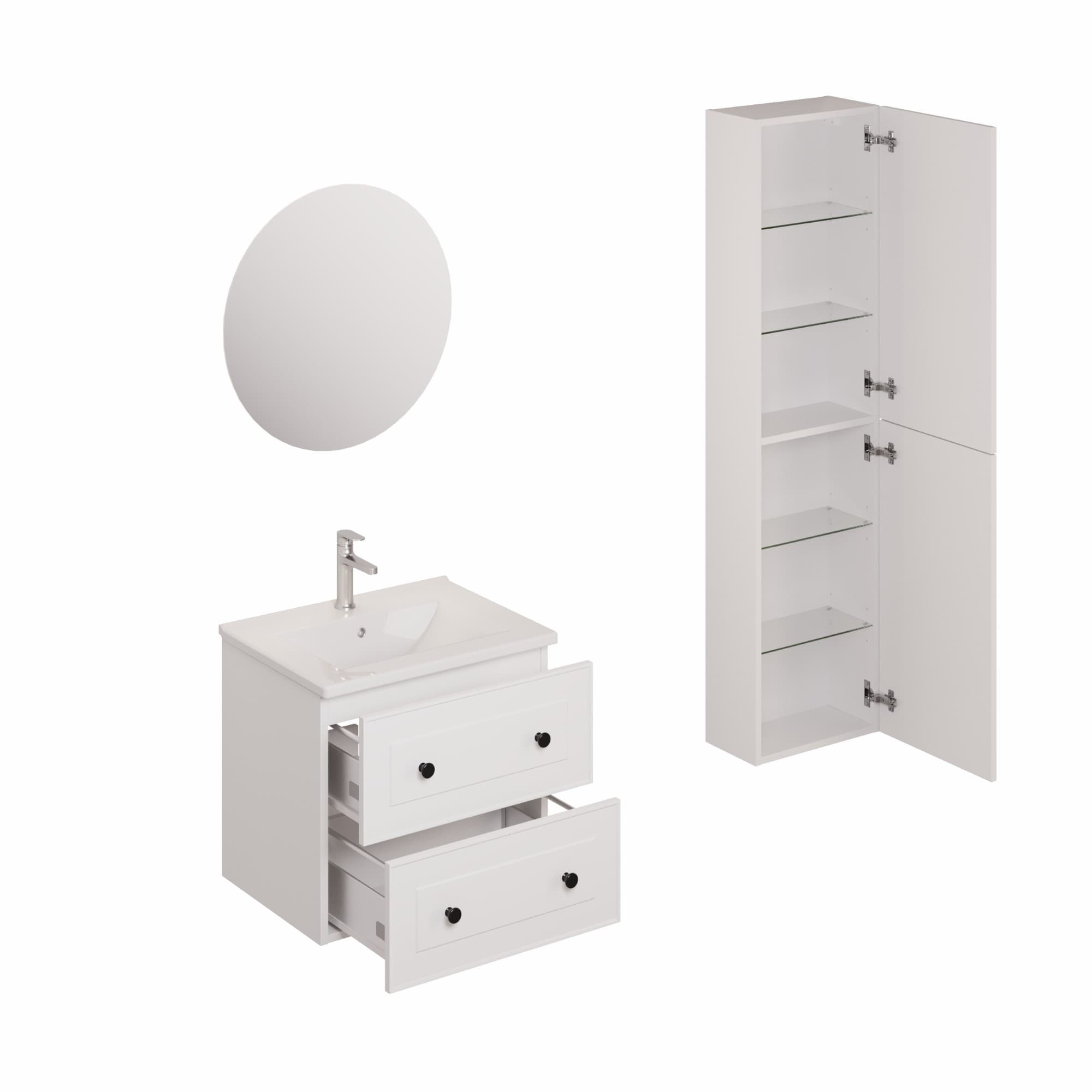L' ensemble de salle de bain Naturel Forli avec lavabo comprend mitigeur de lavabo et siphon. C'est un ensemble de salle de bain à prix réduit qui offre un design moderne et simple. Les armoires sont fabriquées dans un matériau blanc de haute qualité, ce qui donne à l'ensemble un aspect élégant. L'ensemble offre suffisamment d'espace de rangement pour les affaires de salle de bain. Le mitigeur de lavabo à surface chromée s'accorde parfaitement au design de l'ensemble. D’une manière générale, il s’agit d’un ensemble moderne et élégant qui complétera parfaitement votre salle de bain.