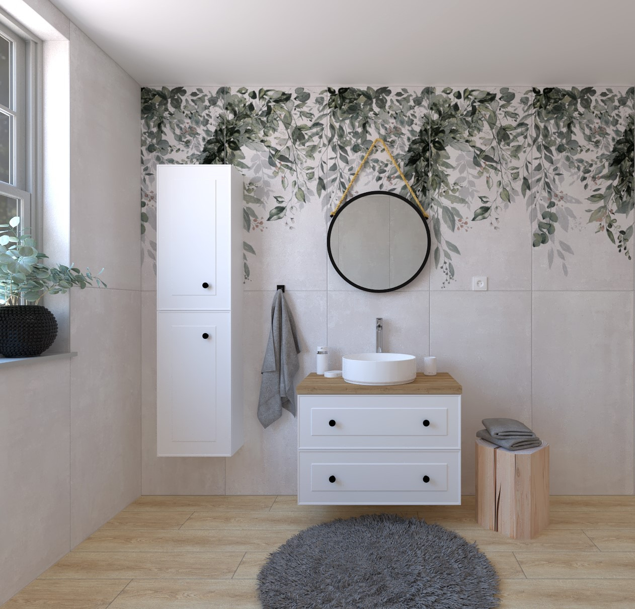 - Miroir Naturel 40 cm noir. Le miroir a un cadre noir élégant et peut être placé au-dessus du lavabo.