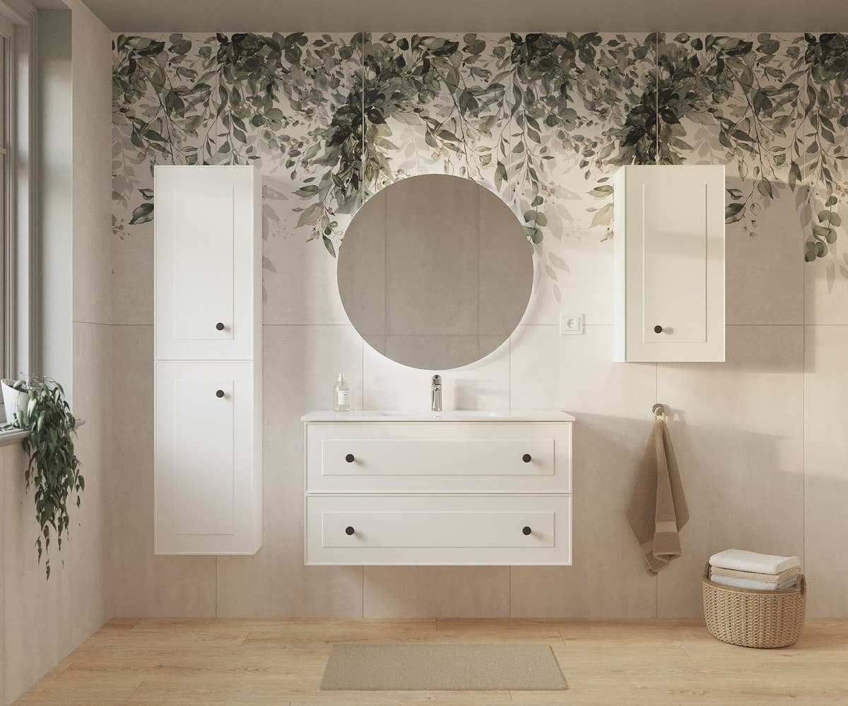 Le meuble de salle de bain avec lavabo Naturel Forli offre un design moderne et simple. Les armoires sont fabriquées dans un matériau blanc de haute qualité, ce qui donnera à votre salle de bain un look élégant.