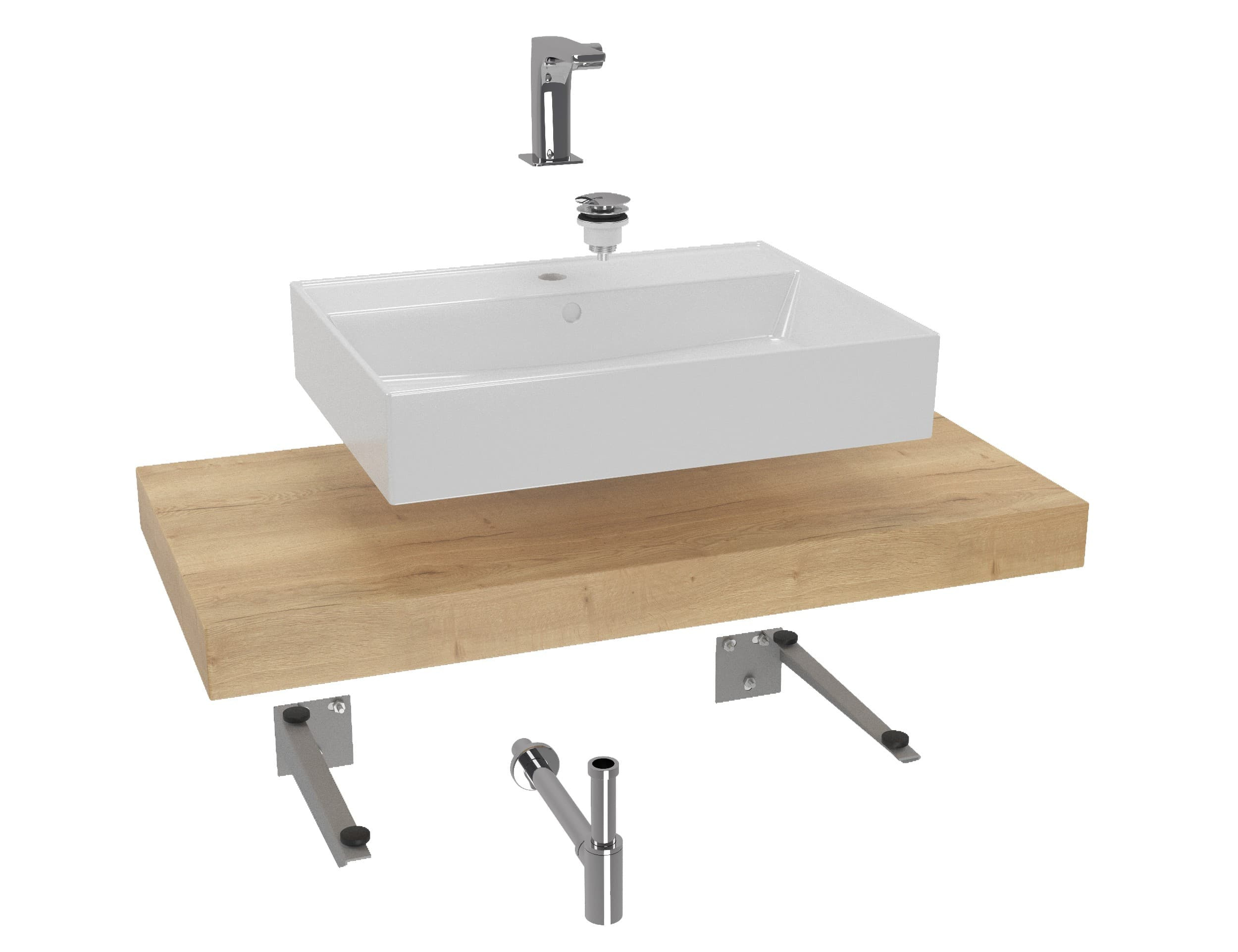 Naturel Ensemble de salle de bain SAT avec plaque sous lavabo Dolce 100x8x50 cm chêne halifax KSETDO11