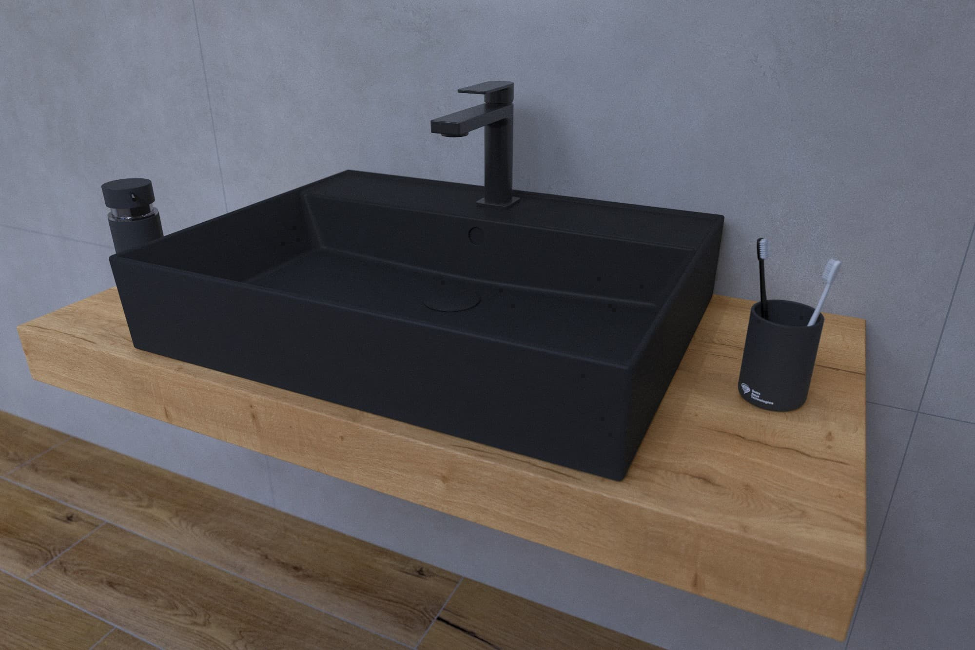 Lavabo SAT Infinitio 60,5x46,5 cm noir mat trou pour robinet au milieu SATINF6046BKM
